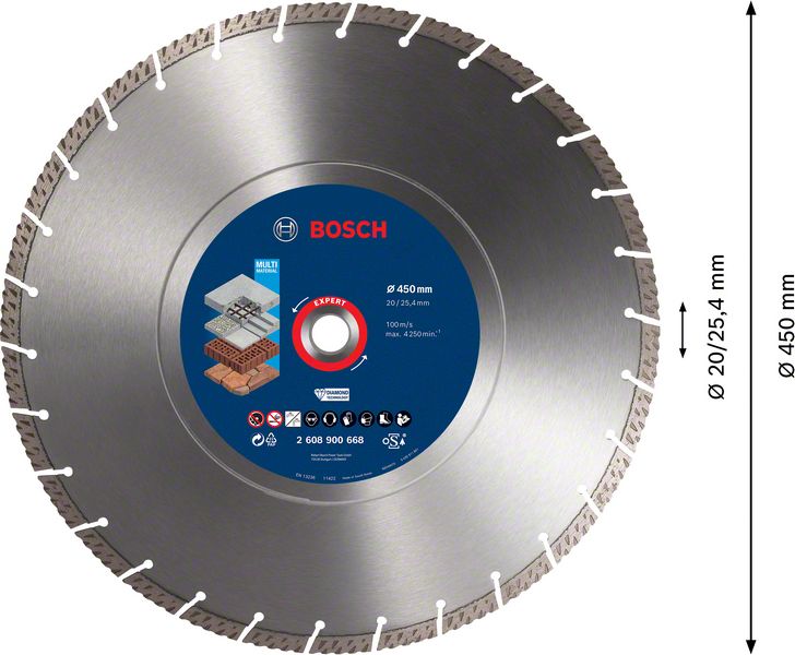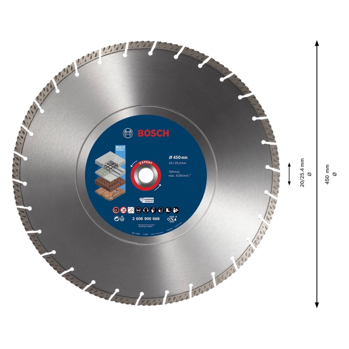 - 1x Bosch Expert MultiMaterial Disque à tronçonner diamanté, 450 x 3,3 x 25,40 mm
