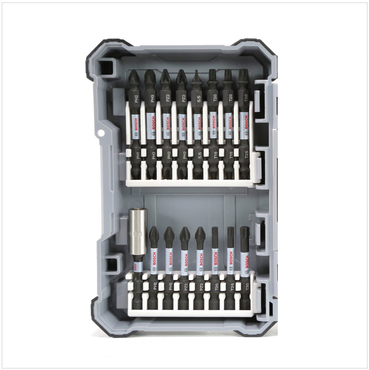 Le set de vissage Bosch Impact comporte un total de 36 embouts. L'identification des embouts est facile, grâce au marquage laser. Une zone médiane spécifiquement conçue pour la torsion pour une meilleure résistance au serrage. Tous les embouts sont extrêmement robustes est adapté aux visseuses à chocs.
