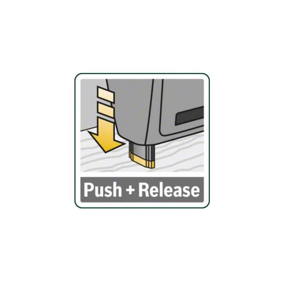 La Bosch PTK 14 EDT est équipée d'un réglage de la force d'impact électrique, qui permet un résultat de travail optimal lors de l'utilisation de différentes longueurs de clip et de types de matériaux. L'agrafeuse est équipée d'une poignée souple pour une manipulation sûre et confortable. L'agrafeuse a un simple magasin d'agrafes avec un indicateur de recharge. L'appareil est polyvalent, avec des clips et des clous, lors de la fixation de matériaux minces au bois.