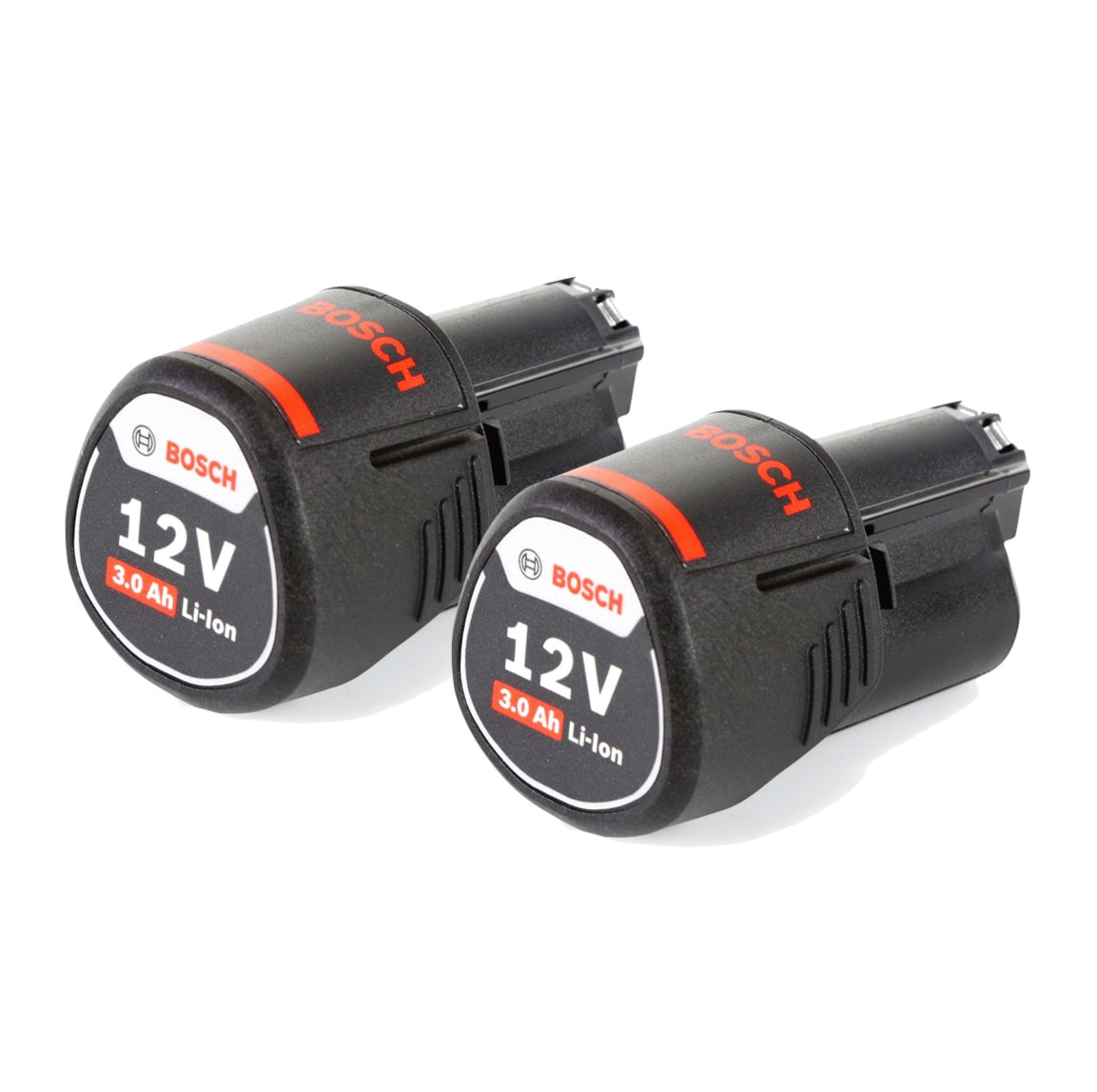 - 2x Batteries Bosch GBA 12 V 3,0 Ah / 3000 mAh Li-Ion Rod Slot (1600A00X79)