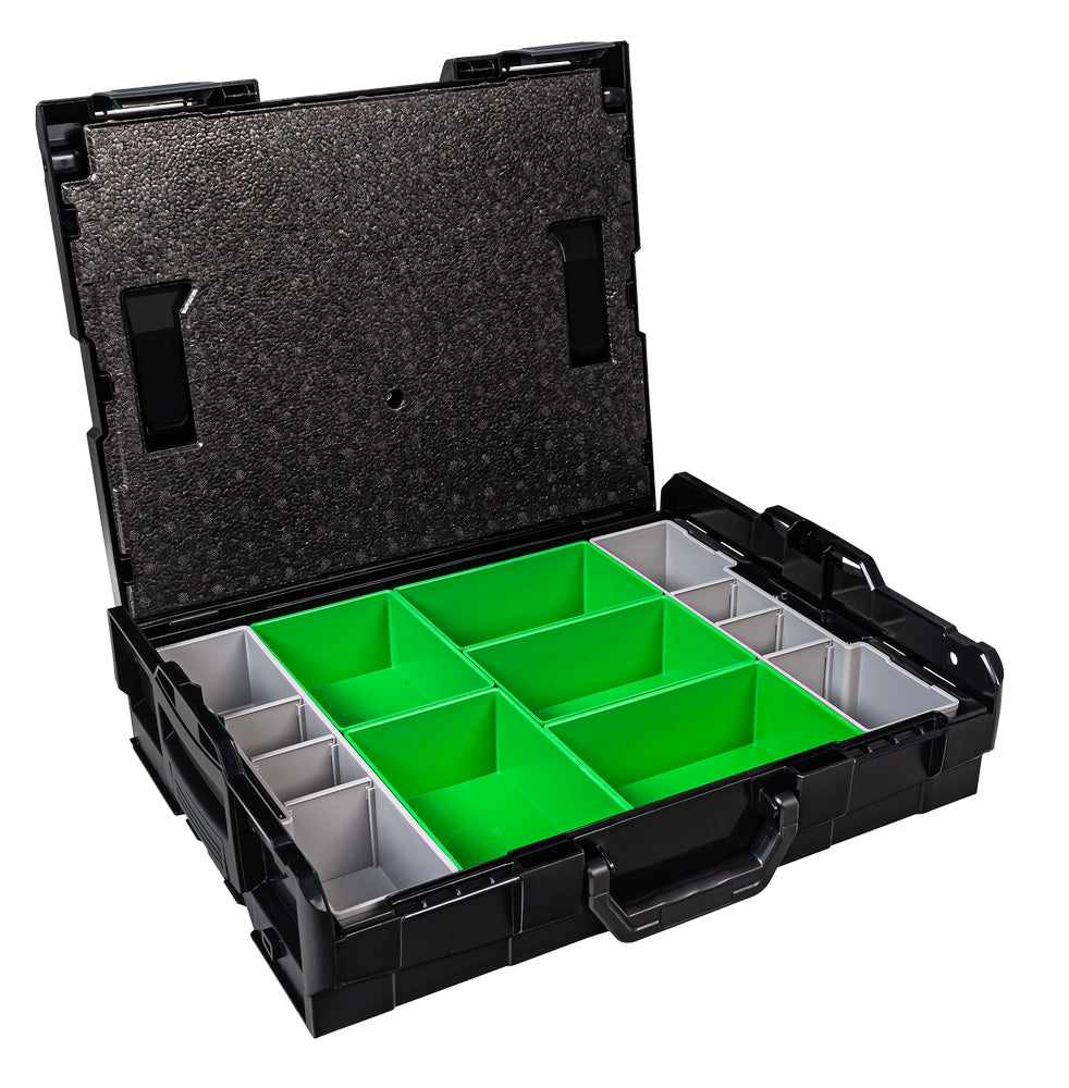 Avec le set Insetbox D3 LB 102, vous gardez toujours vos petites pièces parfaitement ordonnées sous les yeux. Que vous les utilisiez dans votre atelier, en combinaison avec le système L-BOXX ou ProClick, elles s'adaptent partout. Le set se compose de 2 Insetbox U3 en gris, y compris 6 séparateurs, et de 5 Insetbox D3 en vert.