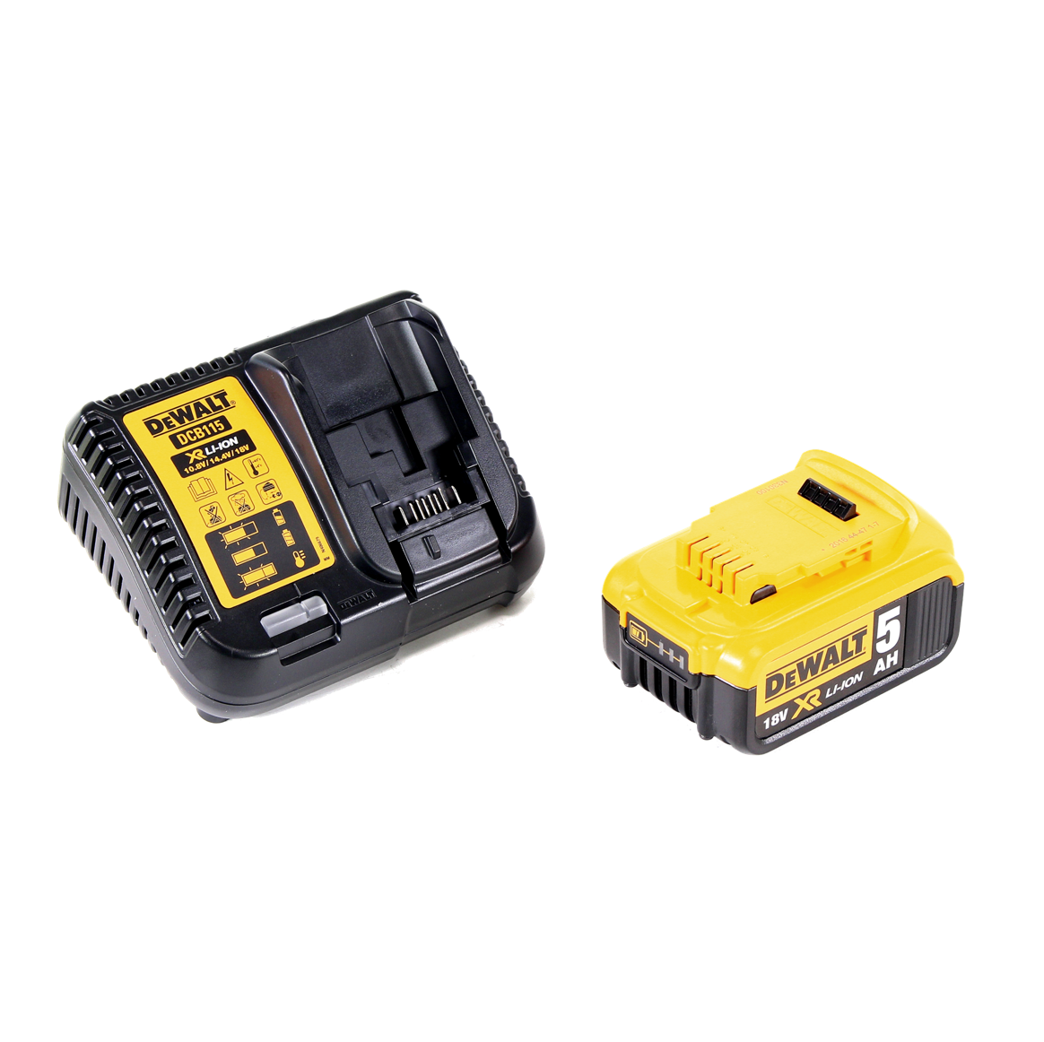 1 x chargeur Dewalt DCB 115 XR pour batteries Li-Ion 10,8 - 18 V. La batterie Li-Ion DeWalt DCB 184 18 V / 5 Ah est compatible avec toutes les machines à batterie 18 V XR de DeWalt. Il dispose d'un indicateur de niveau de charge de la batterie LED et peut avoir une longue durée de vie et une longue durée de fonctionnement. Grâce à la technologie Li-Ion, la batterie n'a aucun effet mémoire. Le chargeur DCB 115 convient aux batteries Li-ion d'une tension de 10,8 V ; 14,4 V et 18 V. L'écran LED fournit des informations sur la batterie et l'état de charge – convient également pour un montage mural.