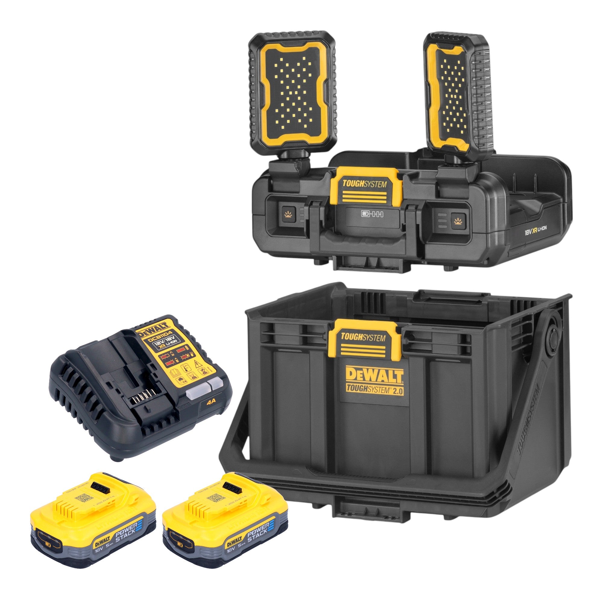 DeWalt DWST08061-1 Boîte à outils avec lampes intégrées 395 x 352 x 255 mm ToughSystem 2.0 + 2x Powerstack batterie 5,0 Ah + chargeur