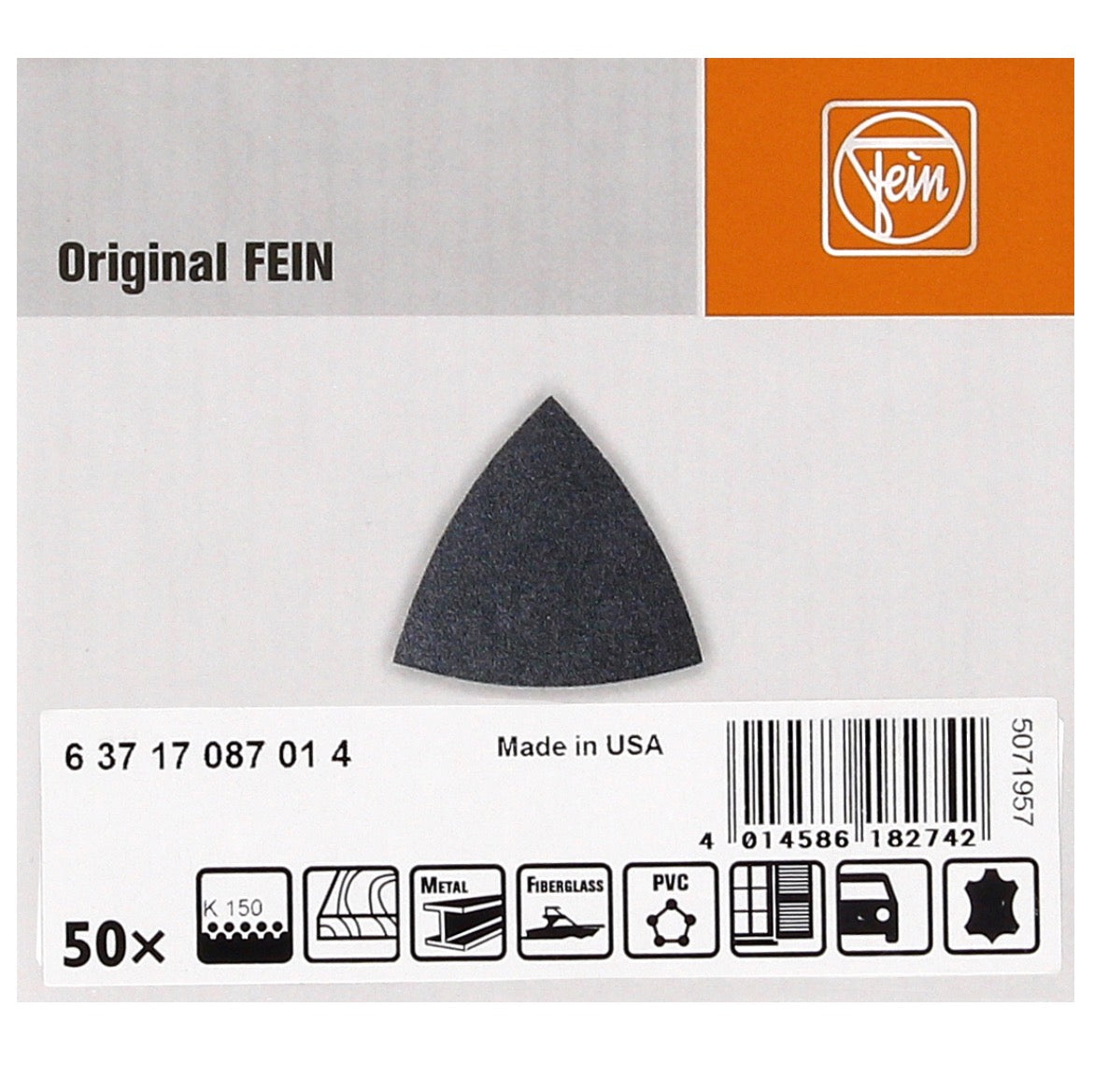 - 50 x FEIN Feuilles abrasives Delta non perforées avec velcro grain 150 (63717087014)