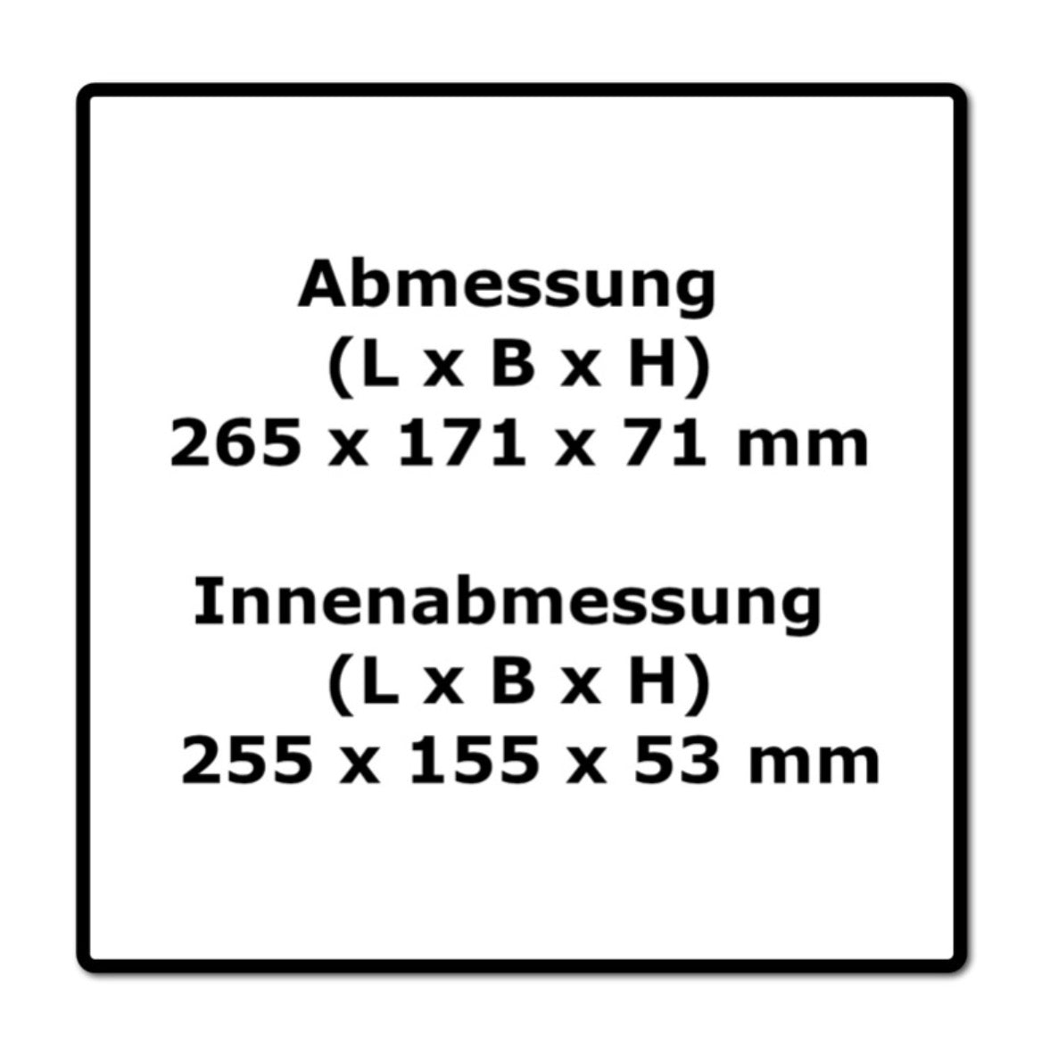 Dimensions intérieures (L x l x H) : 255 x 155 x 53 mm