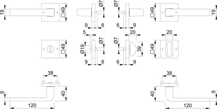 Garniture de poignée de porte à rosettes en aluminium HOPPE avec rosettes à clé pour portes intérieures : Palier : poignées de porte fixes/rotatives, ressorts de rappel, paliers lisses sans entretien Liaison : Goupille pleine HOPPE - Sous-construction : plastique, ergots d'appui Fixation : invisible, traversante, alternée, vis à usage multiple pour épaisseur de porte 37-42 mm