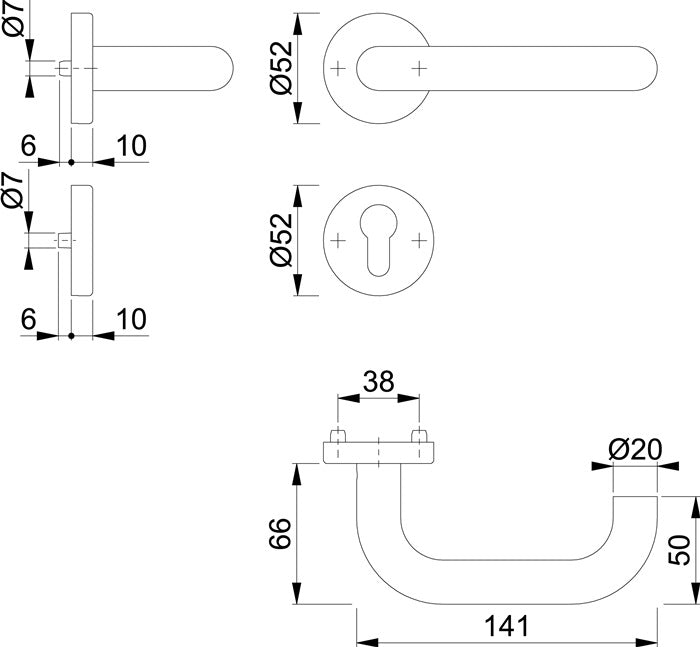 Garniture de poignée de porte à rosette avec rosettes à clé pour portes intérieures - testée selon DIN EN 1906 : 47-0150A et PIVCERTPlus (1.000.000 de cycles d'essai), garniture pour objet (catégorie d'utilisation classe 4) - logement : poignées de porte fixes/rotatives (garniture interchangeable : bouton extérieur fixe), ressorts de rappel, assemblage de poignée enfichable HOPPE avec blocage à bille Sertos®, paliers lisses sans entretien - assemblage : Goupille pleine profilée HOPPE (poignée) / Goupille pleine profilée HOPPE FDW (poignée interchangeable), trempées - Sous-construction : rosettes de poignée en acier, rosettes de clé en plastique, cames d'appui - Fixation : invisible, continue - Vis filetées M5 pour rosettes de poignée - Vis polyvalentes pour rosettes de clé, alternées - TS 40 - 45 mm
