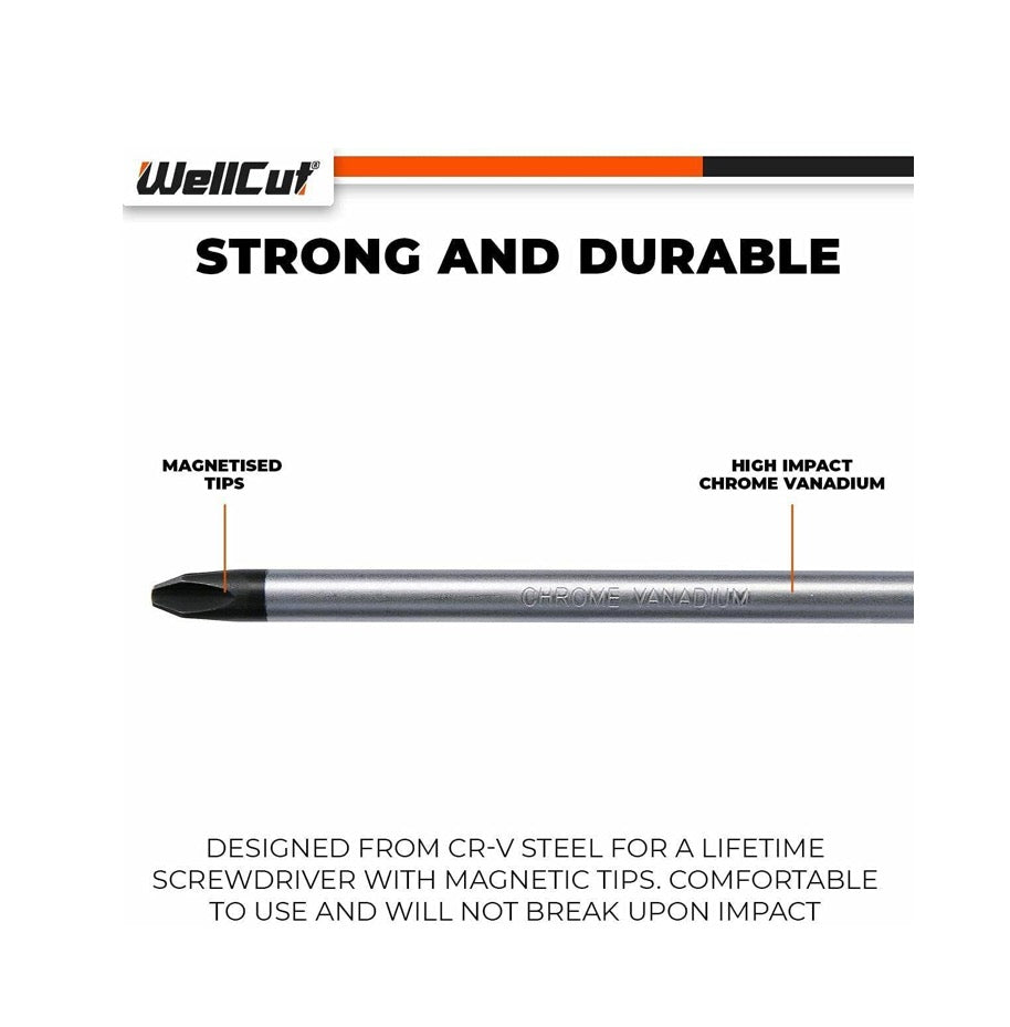 Jeu de tournevis magnétiques WellCut, 8 pièces, embouts cruciformes et à fente, acier au chrome-vanadium, avec poignées souples Soft-Grip ( WC-SD8 )