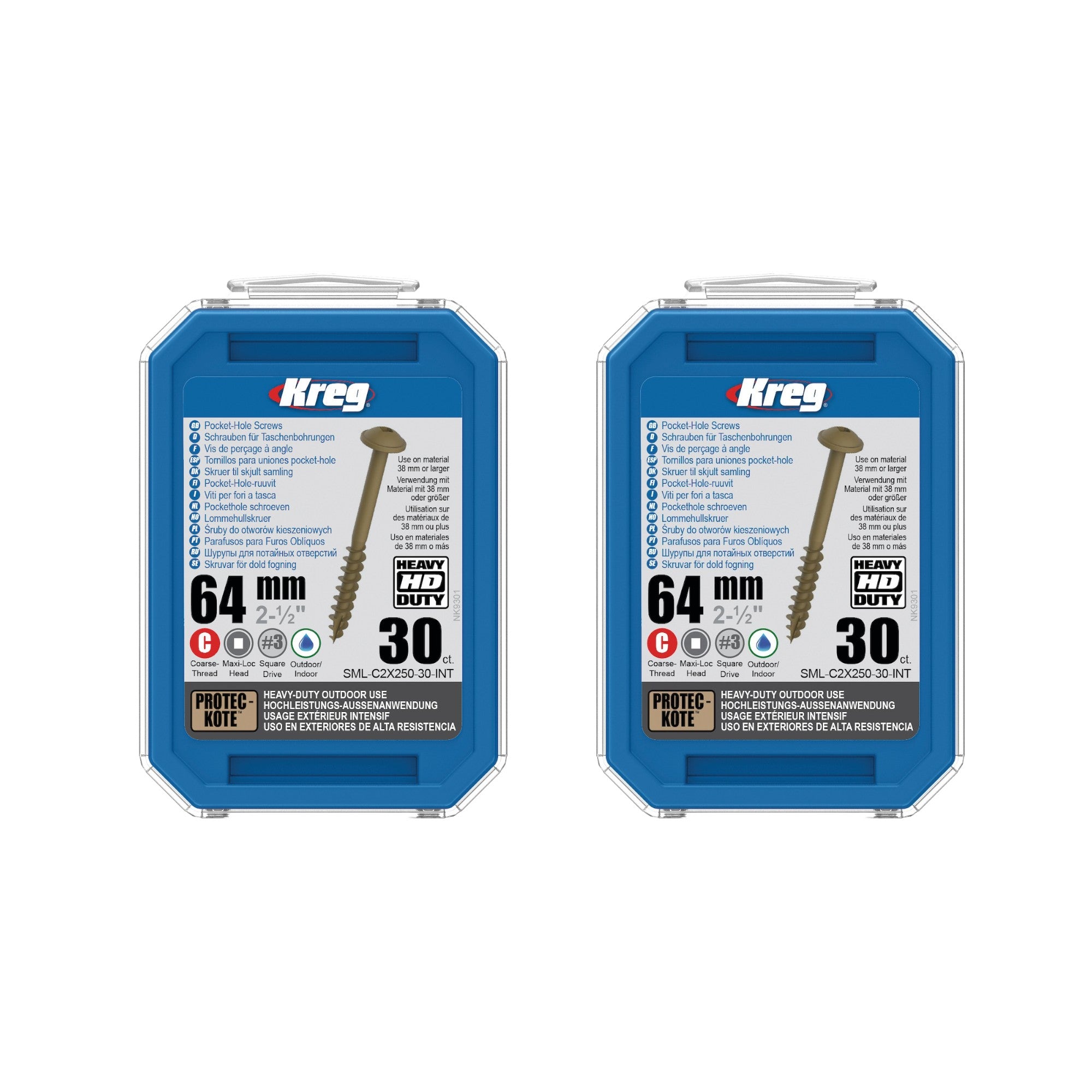 Kreg 2x HD Protec-Kote Maxi-Loc Vis pour trous de poche 64 mm ( 2x SML-C2X250-30-INT ) Filetage grossier 60 pces