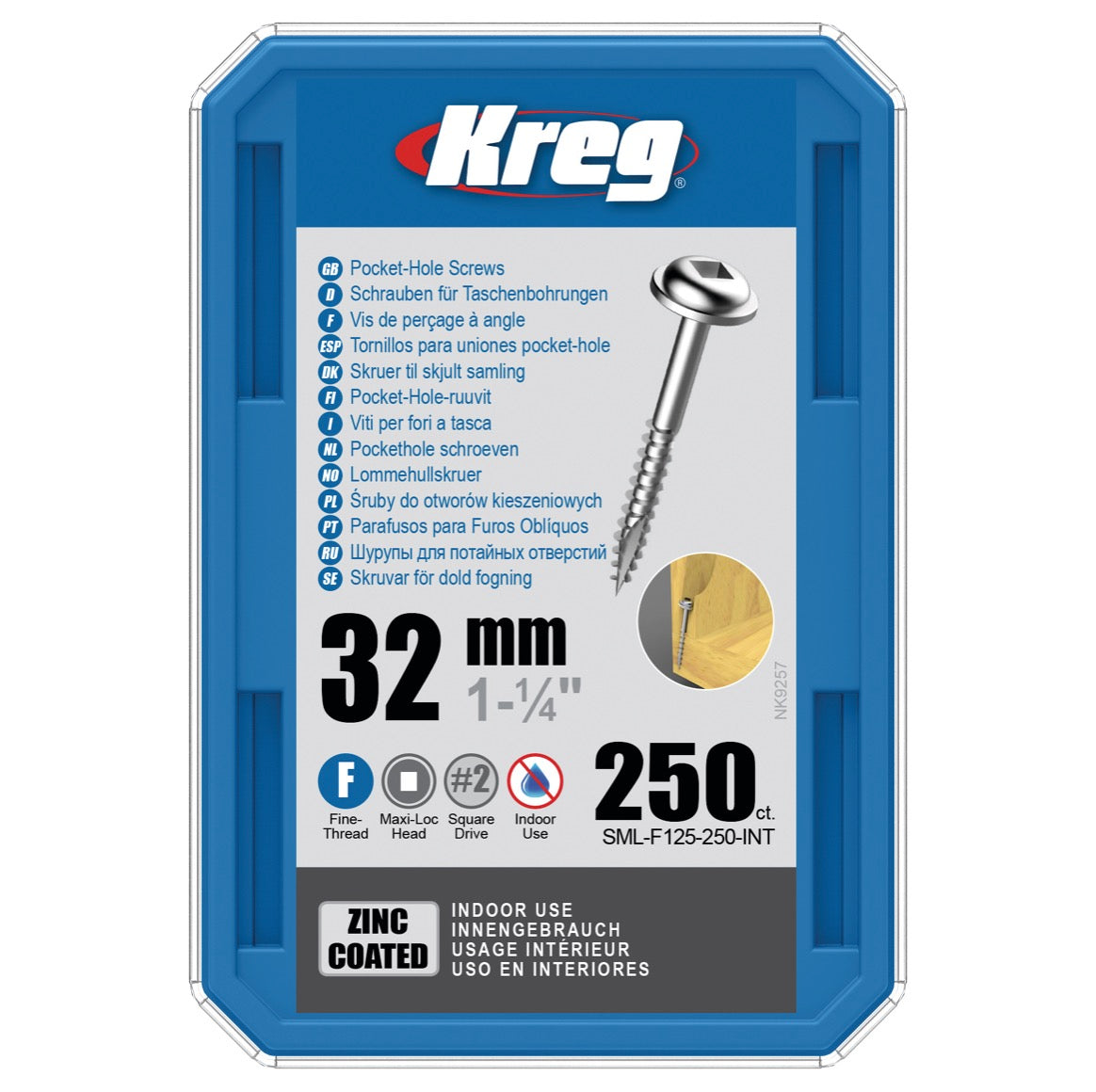 KREG Pocket-Hole Vis en acier zingué avec tête rondelle 32mm - 250 pièces avec filetage fin ( SML-F125-250 )