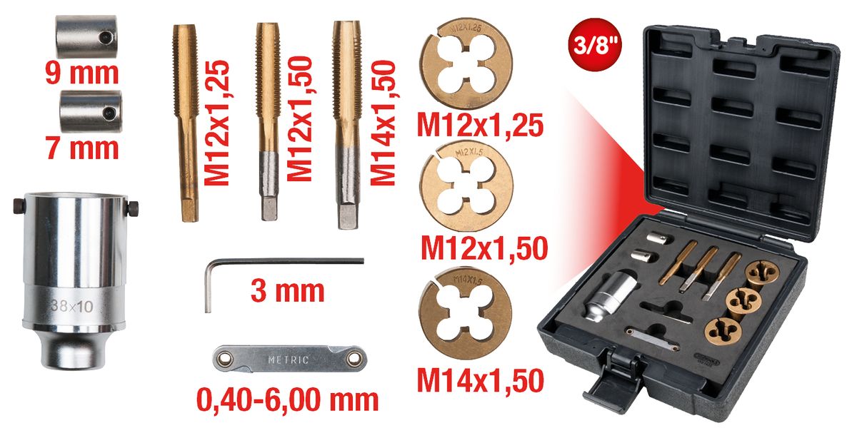 KS TOOLS 3/8' Kit de tarauds sans mandrin pour boulons et vis, 11 pcs ( 150.1420 )