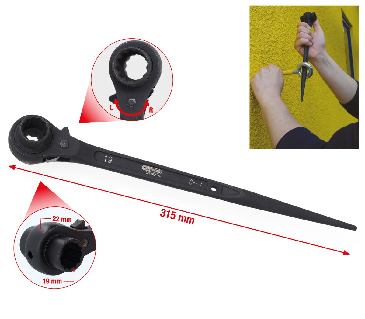 KS TOOLS Clés à cliquet à douille réversible, 19x22mm ( 522.1922 )