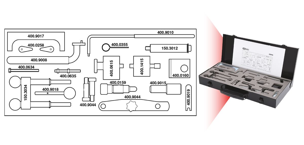 KS TOOLS Jeu d'outils de réglage moteur pour VAG, 21 pcs ( 400.2225 )