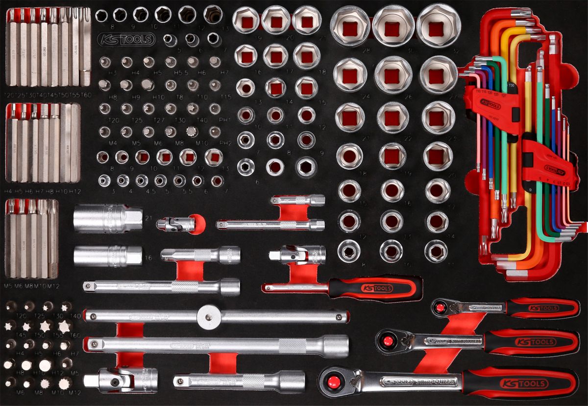 KS TOOLS Jeu de clés à douille 1/4'' + 3/8'' + 1/2'' dans insert en mousse, 159 pcs ( 811.0159 )