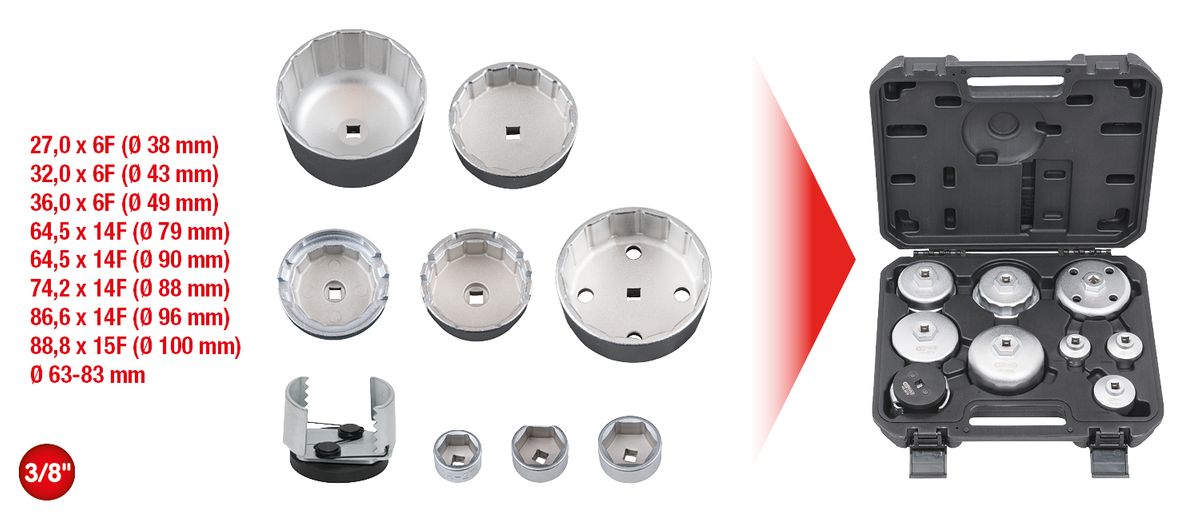 Jeu de clés pour couvercles de boîtiers de filtre et filtres à huile, 9 pcs - Jeu de clés pour couvercles de boîtiers de filtre et filtres à huile