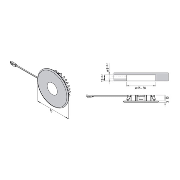 Lampe encastrable avec surface en acier inoxydable de haute qualité · hauteur du bord 2 mm · perçage d'encastrement 55-58 mm · intensité variable avec température de couleur réglable en continu grâce à la technologie Emotion · durée de vie 30 000 h · Indice de protection IP20 · Angle de rayonnement 35° · Ce luminaire contient des ampoules LED intégrées · Classe d'efficacité énergétique F · Sans commande Emotion, la LED éclaire en blanc chaud. Avec le câble adaptateur Emotion 3000 550 088, elle éclaire en blanc froid (non inclus dans la livraison).