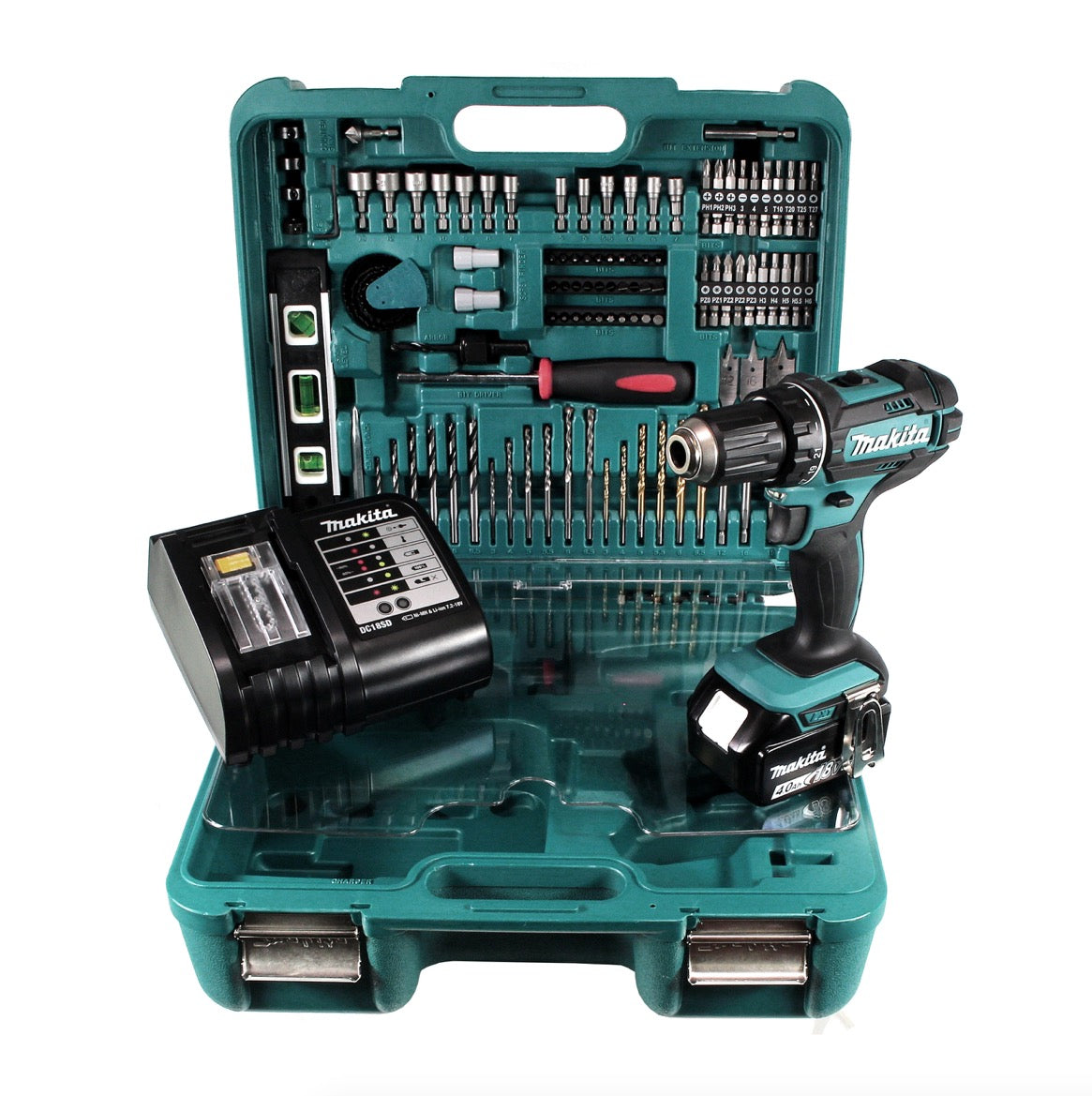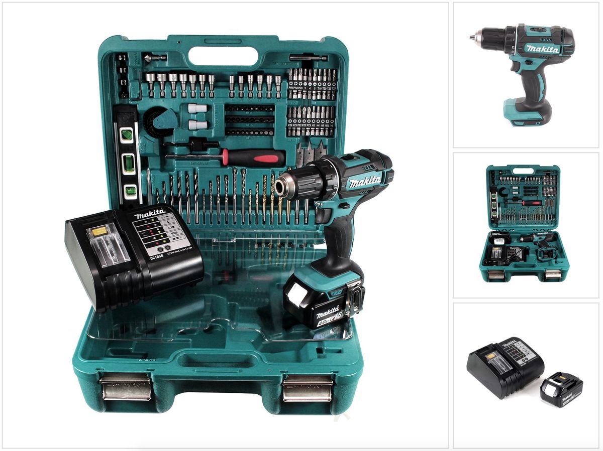 Makita DDF 482 STTK Perceuse visseuse sans fil 18 V + 1 x Batterie 5,0 Ah + Chargeur + Set d'accessoires de 101 pièces
