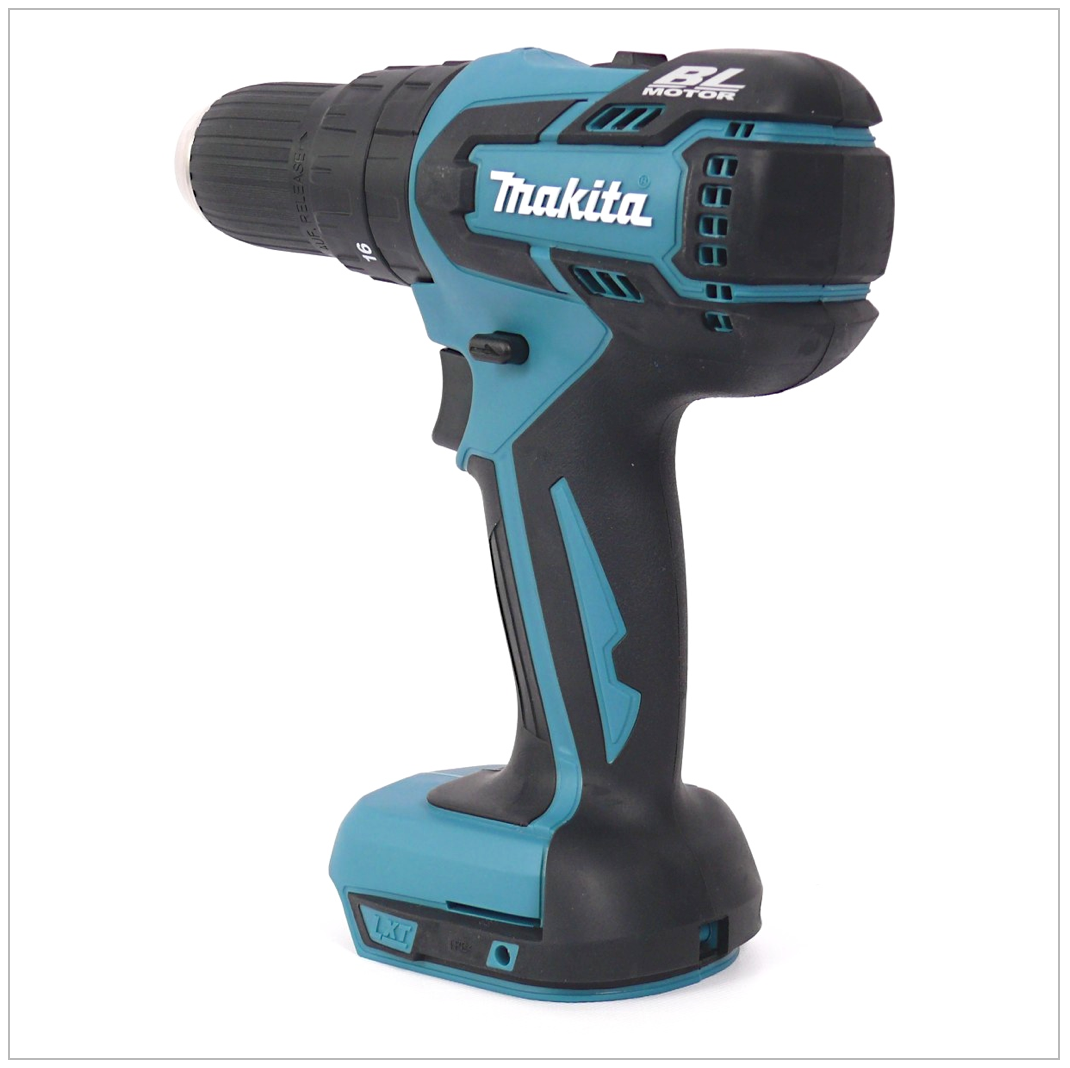 La Makita DHP 459 est une perceuse-visseuse à percussion sans fil compacte avec un moteur sans balai pour plus d'endurance et une durée de vie plus longue. De plus, la perceuse à percussion sans fil est dotée d'un engrenage planétaire entièrement métallique à 2 vitesses ainsi que d'un mécanisme de marteau débrayable. Le couple du DHP 459 peut être réglé en 16 étapes plus une étape de perçage et la pointe de l'outil est éclairée de manière optimale par la LED lumineuse. Avec la mallette de transport en plastique assortie, la clé à chocs sans fil peut également être idéalement rangée et transportée.