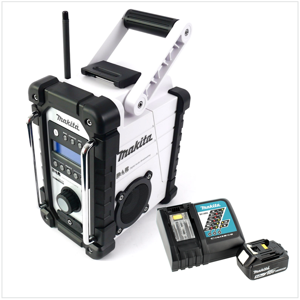 Makita DMR 104 W Radio de chantier Blanc + 1x Batterie BL 1850 18V - 5,0 Ah + 1x Chargeur DC 18 RC