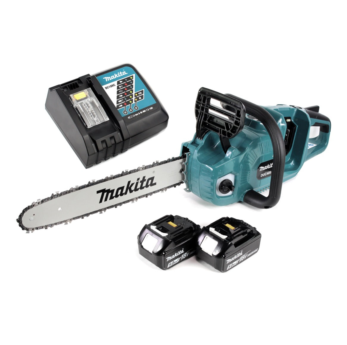 Makita DUC 405 RT2 Tronçonneuse d'élagage sans fil 36V (2x18V) Brushless 40 cm + 2 x Batteries 5,0 Ah + Chargeur rapide