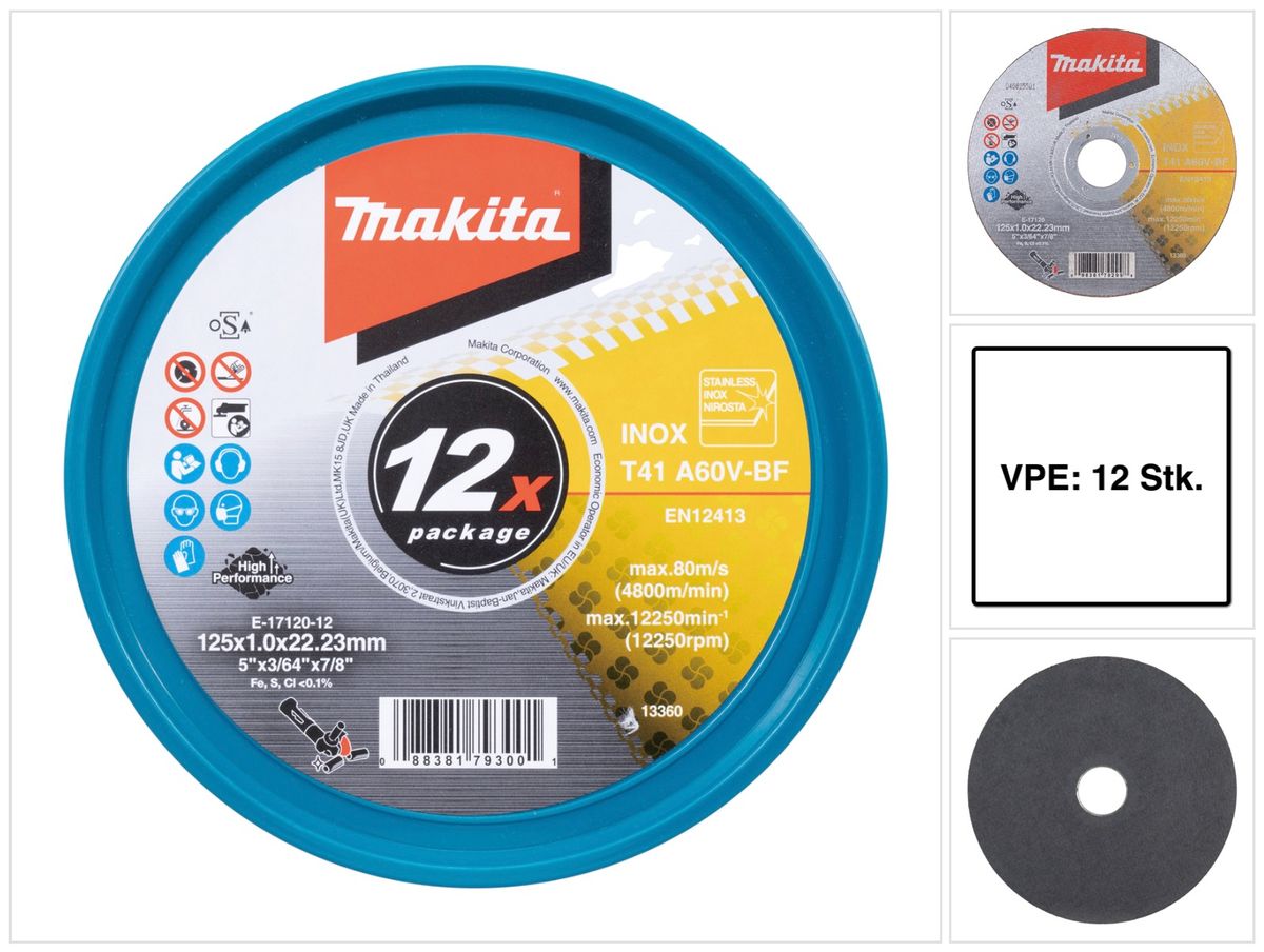 - 12 disques à tronçonner Makita E-17120 INOX 125 x 1,0 x 22,23 mm A60V-BF
