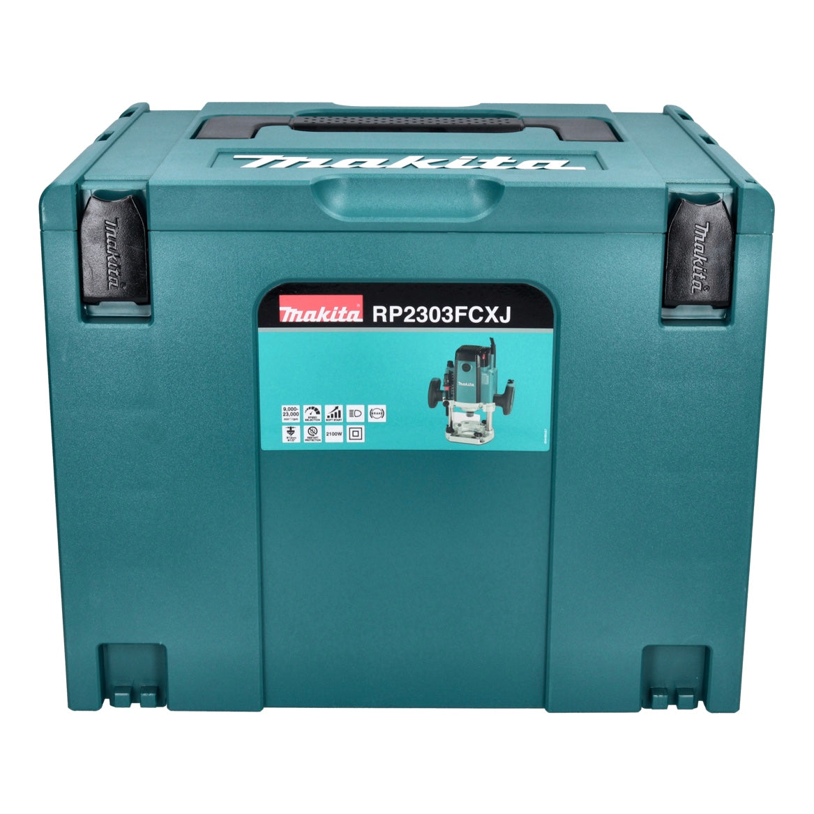 Défonceuse Makita RP 2303 FCXJ 2100 watts course 70 mm + butée + jeu de fraises 6 pièces + Makpac