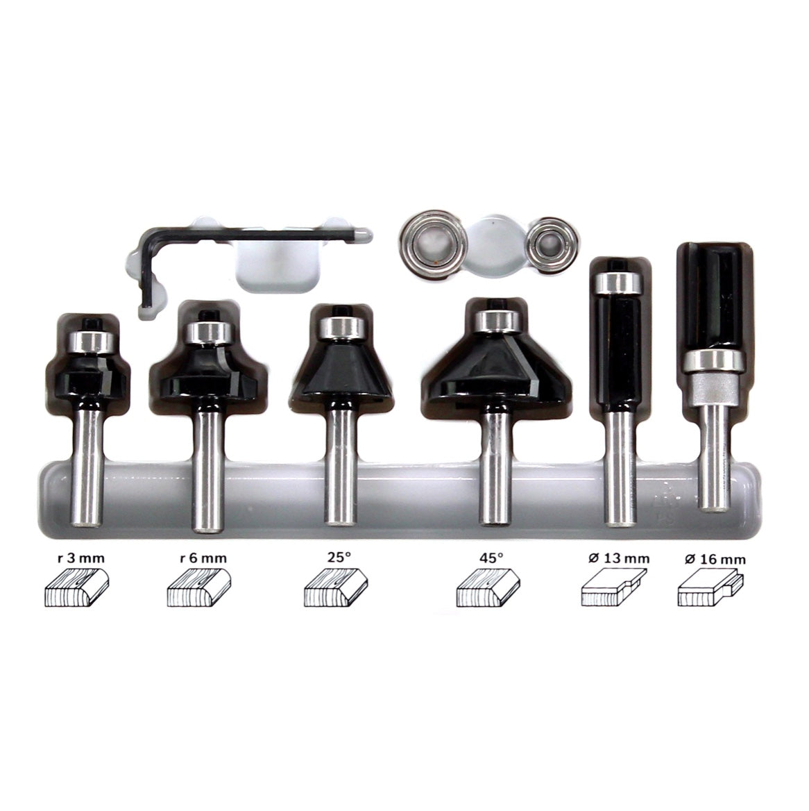 - 1x jeu de fraises de chant et de chant Bosch 6 pièces 8 mm (2607017469) composé de :