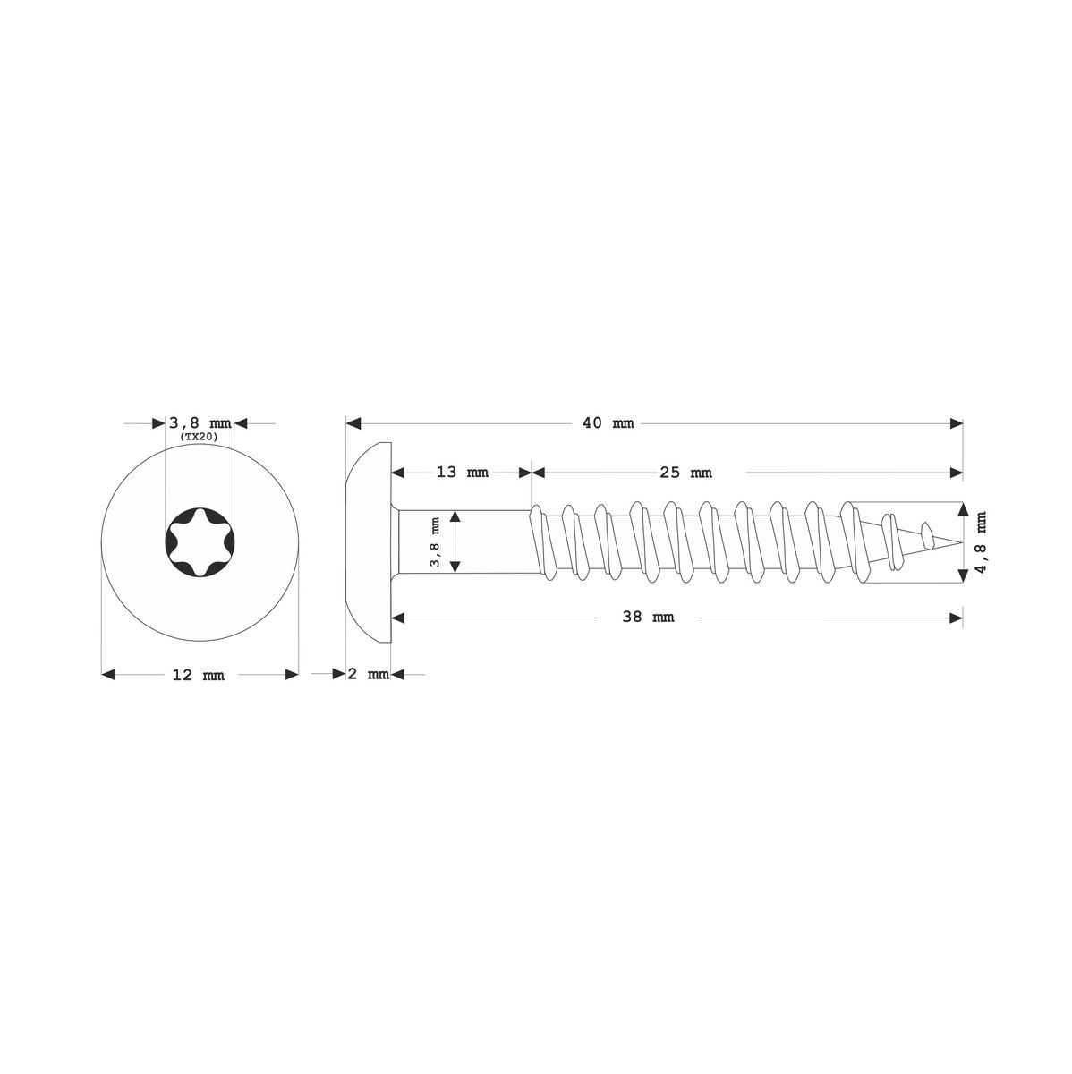 Meisterling Vis de façade 4.8x38 mm - 100 pièces (010020000201) 12 mm tête plate blanche + Filetage partiel Torx V2A acier inoxydable