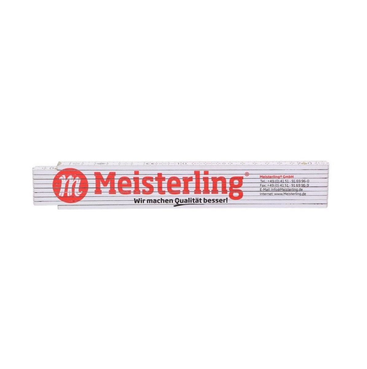 Meisterling Zollstock Règle pliante blanche avec écriture rouge 2m + Echelle d'angle et ressorts en acier (090100000031)