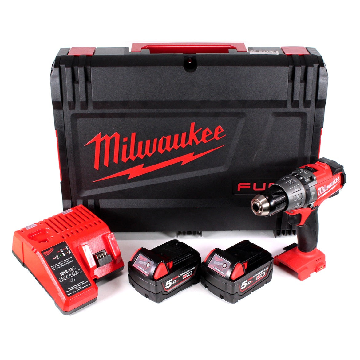 Milwaukee M18 FPD-502c Visseuse-perceuse à percussion sans fil 135 Nm + 2x Batteries M18 B5 5,0 Ah + 1x Chargeur M12-18C + 1x Coffret HD