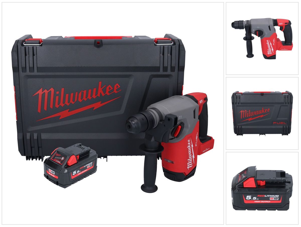 Milwaukee M18 ONEFHX-551X marteau combiné sans fil 18 V 2,5 J SDS-Plus Brushless + 1x batterie 5,5 Ah + HD-Box - sans kit chargeur