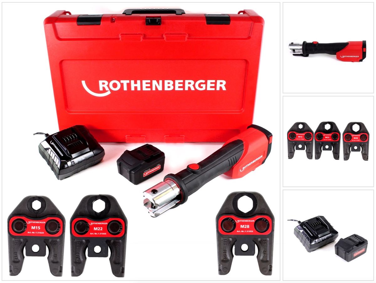 Rothenberger ROMAX 4000 Ensemble de presse série M EU Assortiment 18 V Li-Ion Sertisseuse sans fil Li-Ion + Coffret de transport + 1x Batterie 4,0 Ah + Chargeur + 3x Mâchoires de pressage M ( 1000001927 )