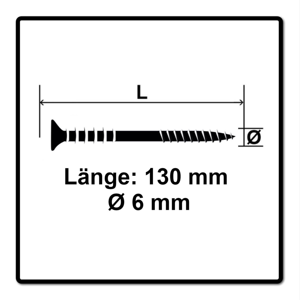 SPAX Vis d'ajustement 6,0 x 130 mm - Filetage avec rainures de maintien - Tête plate - T-STAR Plus - 4Cut - WIROX - 200pcs. (2x 161010601305)