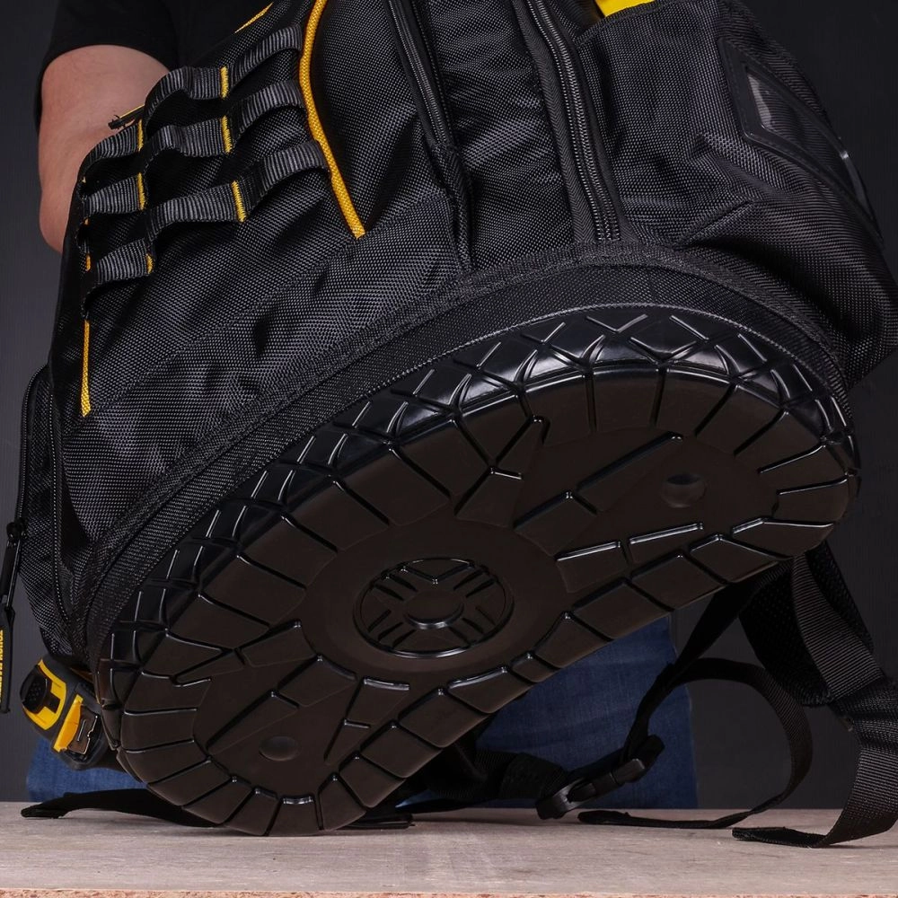 Ce sac à dos d'outils 18 pouces résistant de la marque TOUGH MASTER vous permet de garder vos outils à portée de main. Le sac à dos dispose d'un organisateur d'outils amovible avec 9 compartiments et 6 boucles, qui vous permet de séparer vos objets personnels de vos outils. En outre, la sacoche à outils impressionne par son revêtement en polyester 1680D imperméable & ; robuste et multicouche, qui se distingue nettement du revêtement 600D traditionnel, ainsi que par ses doubles coutures soigneusement conçues et sa poignée caoutchoutée. Pour protéger vos objets de valeur contre les dommages, ce sac à dos professionnel pour outils dispose d'un fond en caoutchouc robuste et d'une couche de mousse pour un rembourrage supplémentaire. Le fond en caoutchouc protège le contenu du sac à dos contre les surfaces humides et sales et maintient le sac à dos à la verticale pour que tout reste bien en place dans les poches. En outre, le sac à dos de rangement des outils comporte 12 compartiments au total, dont un compartiment rembourré pour ordinateur portable pouvant Batterieeillir un ordinateur portable avec une diagonale d'écran allant jusqu'à 17'' (pouces). Sur le côté extérieur, un crochet en nylon renforcé et un support de ruban riveté vous permettent d'accéder facilement à votre ruban et à vos rouleaux de câble. Le dos et les bretelles rembourrés sont importants pour une journée de travail sans douleur. Ces dernières sont dotées d'un filet doux et respirant qui ménage vos épaules et évite les épaules rouges. Parmi les autres caractéristiques du sac à outils, on trouve des sangles pour suspendre des objets, des doubles rivets en caoutchouc, des bandoulières réglables et 2 poches extérieures, dont une poche latérale profonde pour votre bouteille d'eau ou votre parapluie.