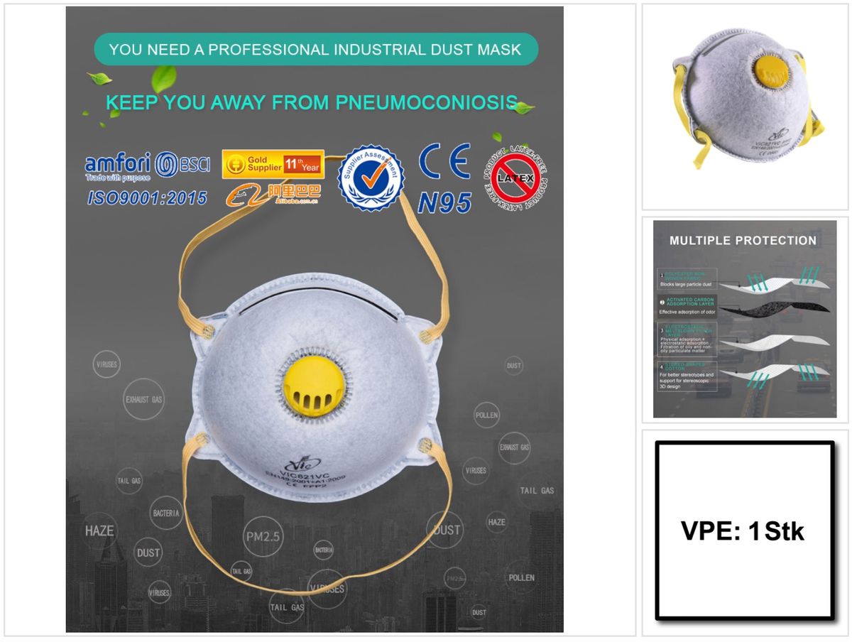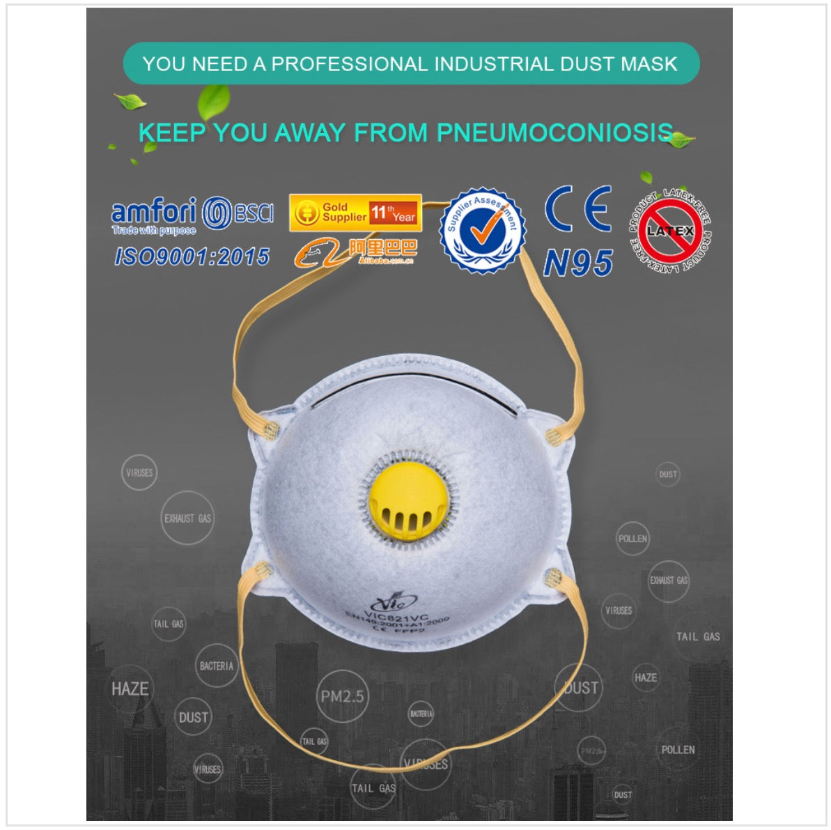 Masque anti-poussières fines VIC VIC821VC (1 pièce) 4 couches FFP2 avec valve au charbon actif de forme ergonomique