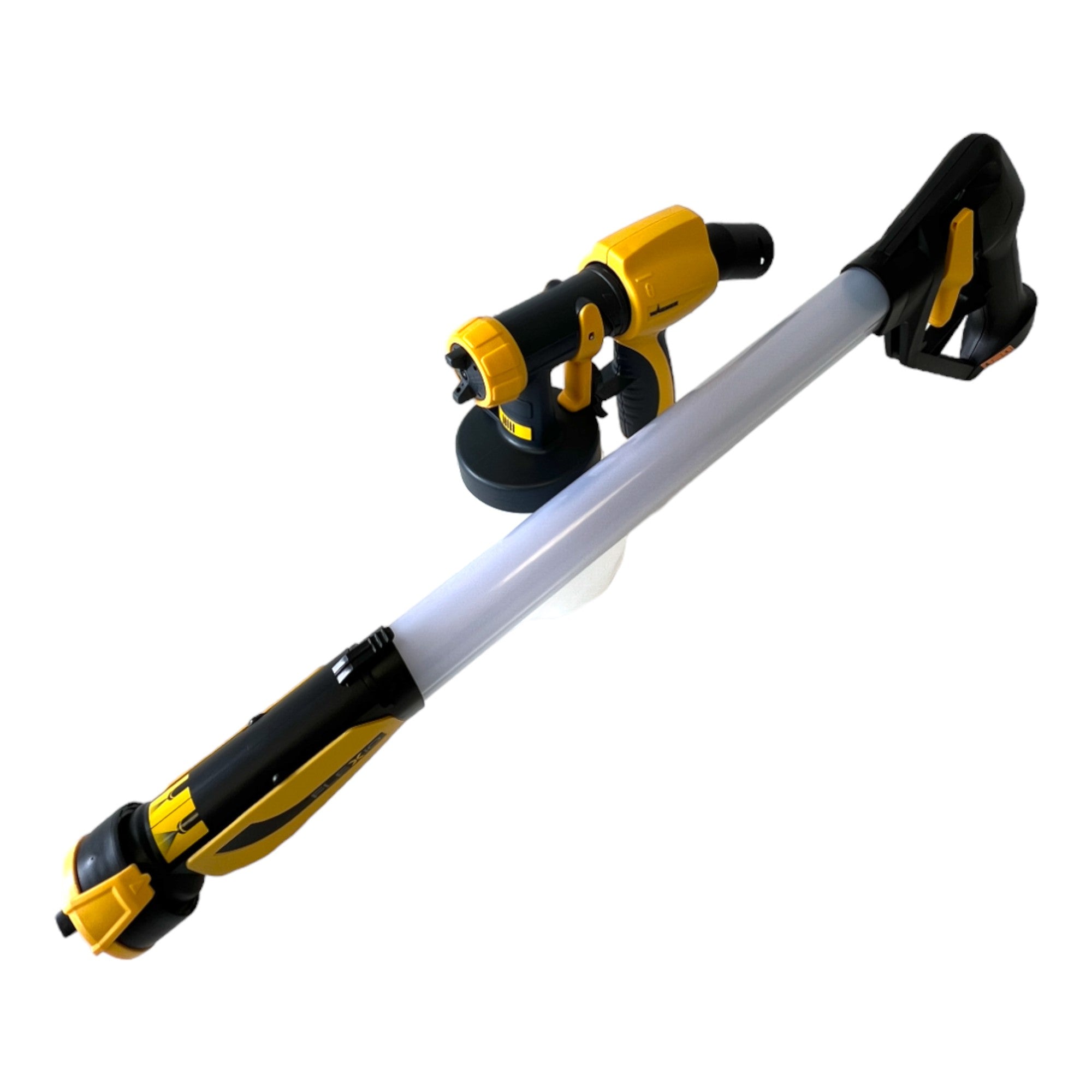 Le système de pulvérisation de peinture W 950 Flexio de Wagner est une excellente solution pour revêtir efficacement et sans effort les plafonds, les murs et les grandes surfaces. Équipé d'une lance de pulvérisation de 70 cm, ce système de pulvérisation universel permet d'atteindre facilement les zones situées en hauteur, sans compromettre l'ergonomie et la facilité d'utilisation. Grâce à la technologie innovante du système, la peinture est aspirée directement du seau, acheminée par le tuyau vers la lance et appliquée uniformément sur la surface, ce qui garantit une couverture parfaite sans coulures ni gouttes. Ce procédé efficace vous permet non seulement d'économiser du temps et de l'énergie, mais aussi de ne pas avoir à refaire fréquemment les couches et de réduire le gaspillage de peinture.