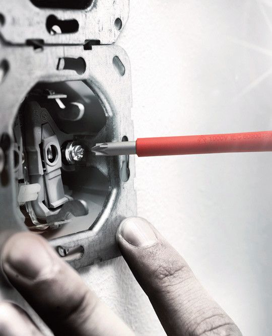 avec poignées Kraftform multicomposants avec protection anti-roulement - isolées VDE jusqu'à 1000 V - fabriquées selon CEI 60900, testées pièce par pièce - lames en acier à outils allié - avec diamètre de lame réduit et isolation de protection intégrée (convient particulièrement bien pour les vis profondes et les éléments de ressort) - système de guidage de la taille - Take it easy Tool Finder System