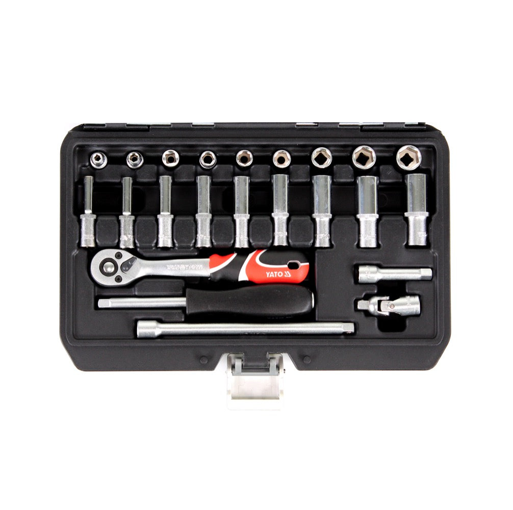 Yato YT-14451 Set de Clés à douille 1/4' contenant Ecrous et Poignée à cliquet - 23 pcs.