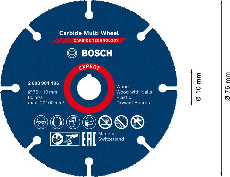 Bosch EXPERT Carbide Multi Wheel Disco da taglio 76 x 10 mm - 1 pz. ( 2608901196 ) Carbide Technology