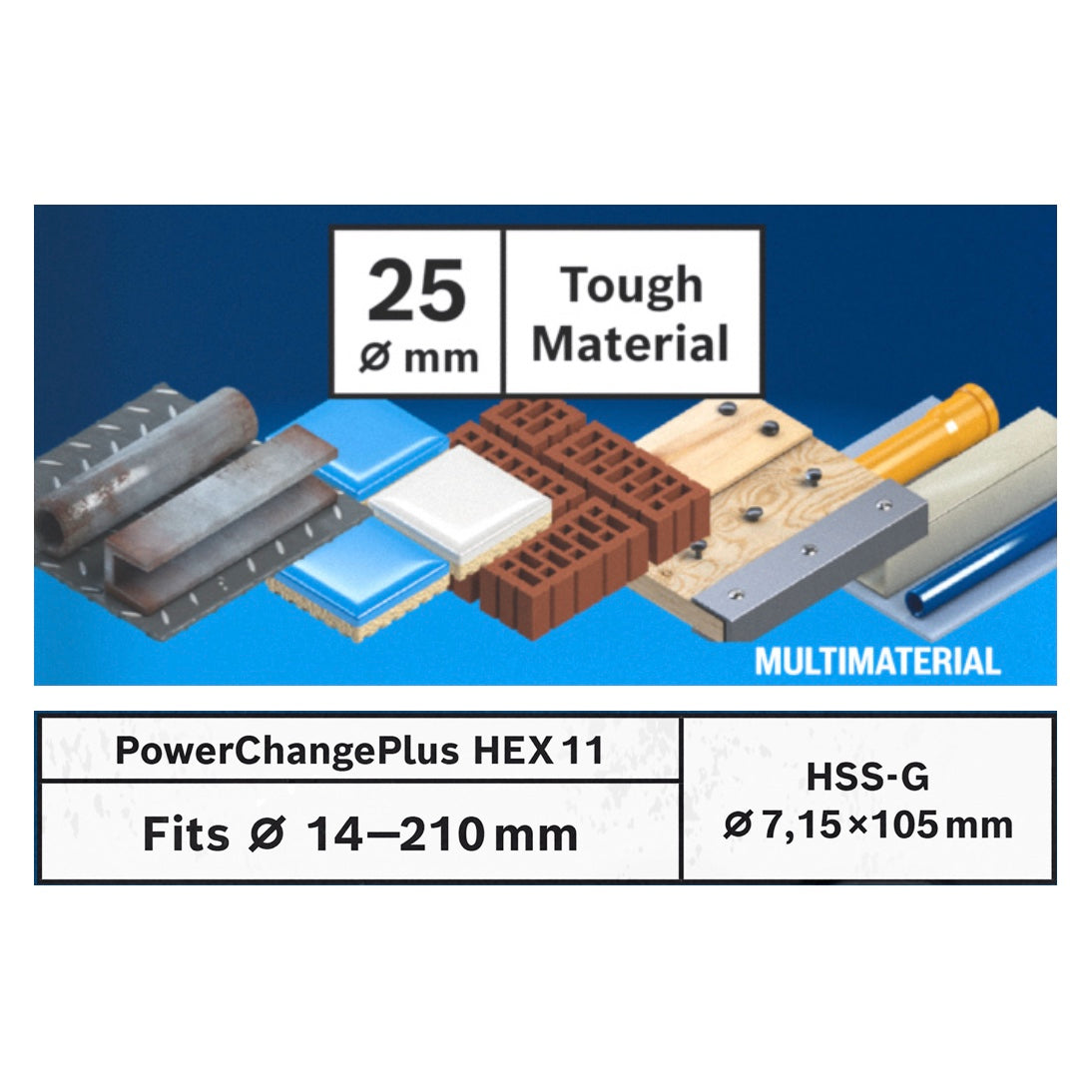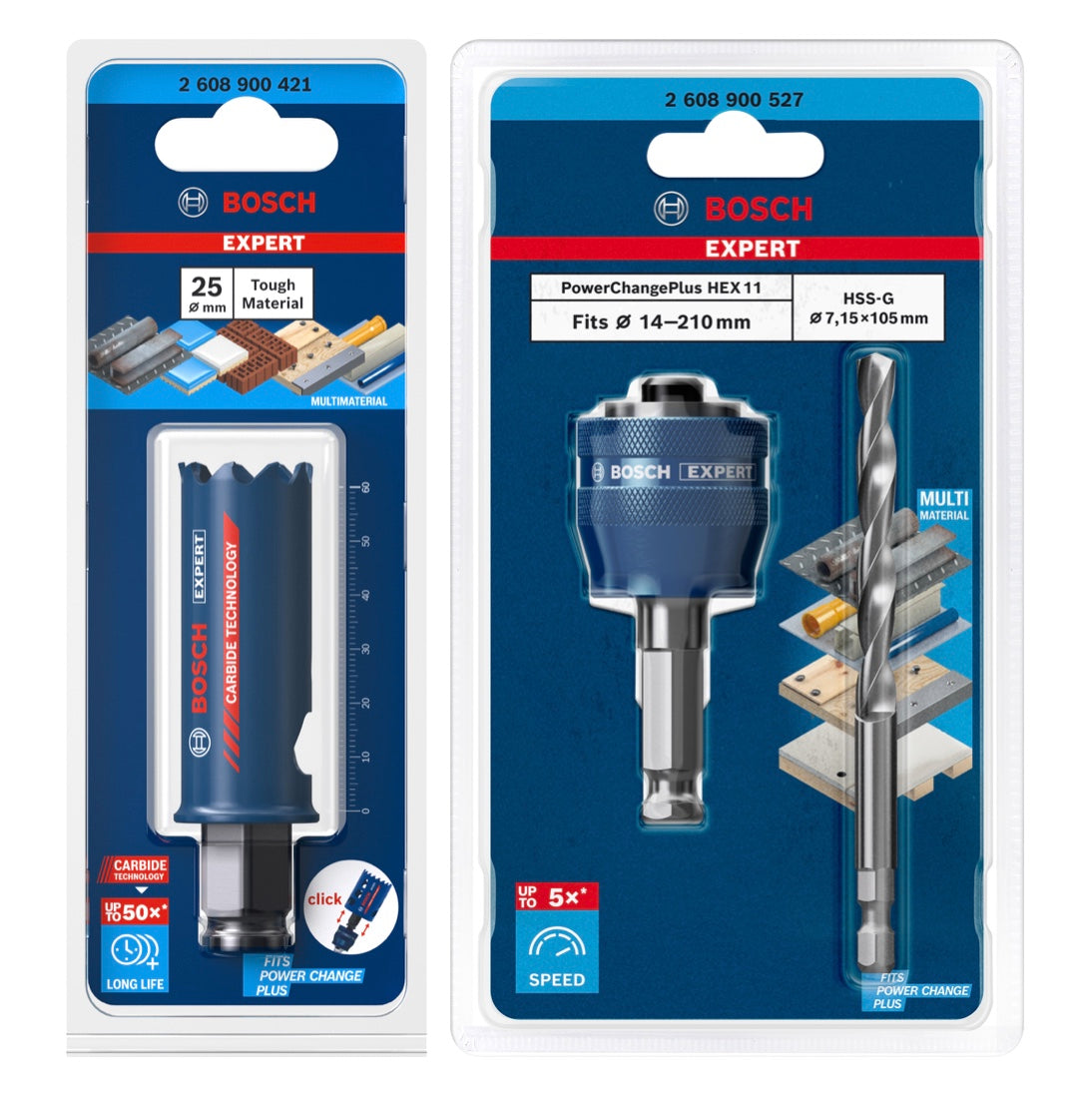 Bosch EXPERT Tough Material Lochsägen Starter Set 25 x 60 mm Carbide ( 2608900421 ) Universal + Power Change Adapter ( 2608900527 )