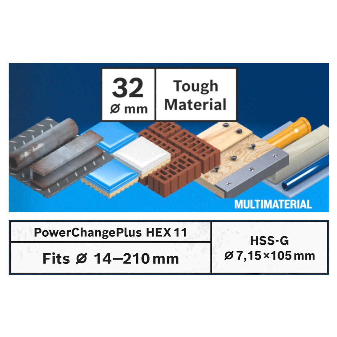Bosch EXPERT Tough Material Lochsägen Starter Set 32 x 60 mm Carbide ( 2608900422 ) Universal + Power Change Adapter ( 2608900527 )