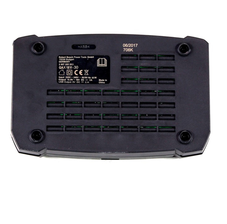 Il Bosch GAX 18 V-30 è un caricabatterie veloce a doppio alloggiamento, multivoltaggio e dotato di USB. Il caricabatterie ha due alloggiamenti di ricarica, uno per 10,8 / 12 volt e l'altro per 14,4 / 18 volt.