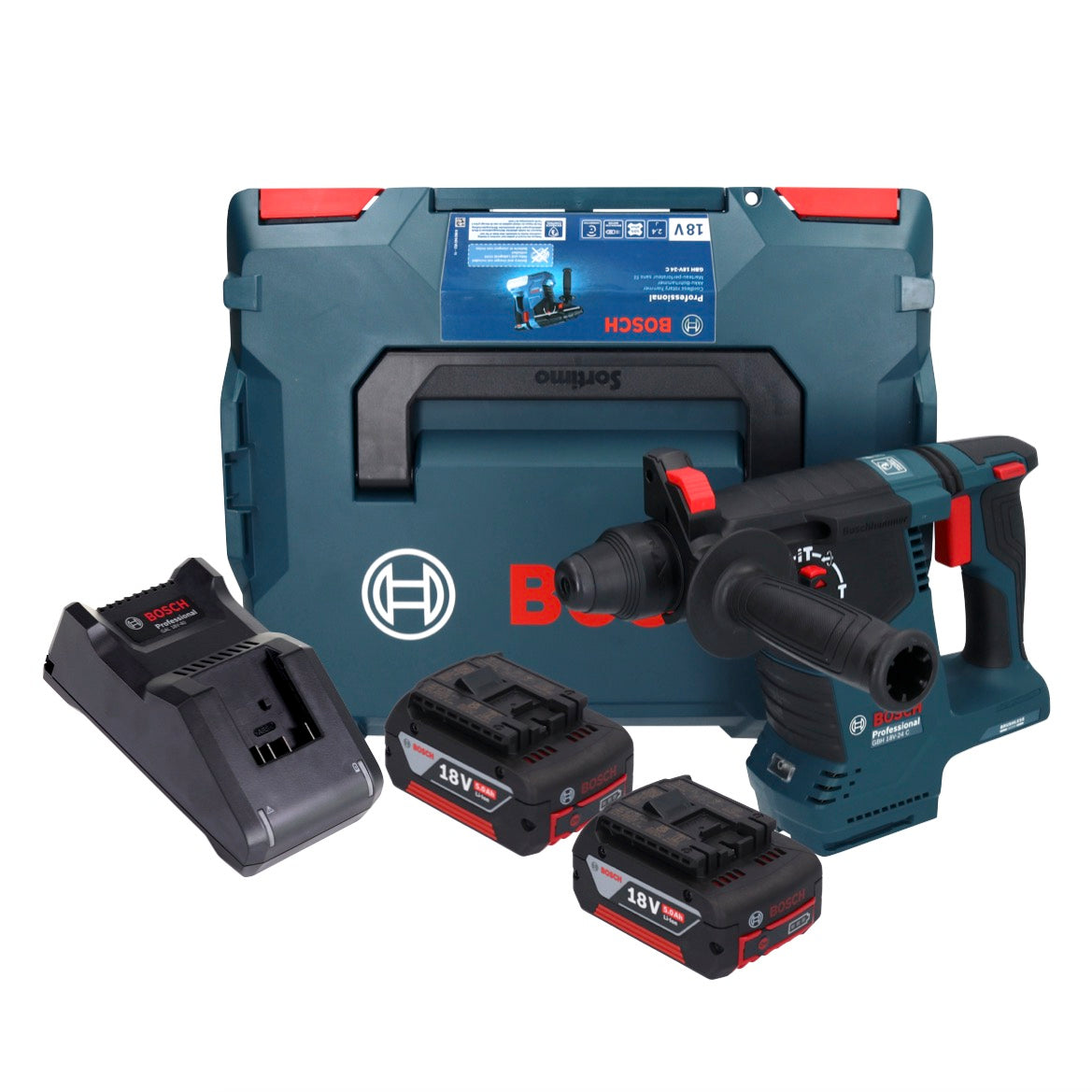 Bosch GBH 18V-24 C Martello rotativo professionale a batteria 18 V 2,4 J Brushless SDS plus + 2x batteria ricaricabile 5,0 Ah + caricabatterie + L-BOXX
