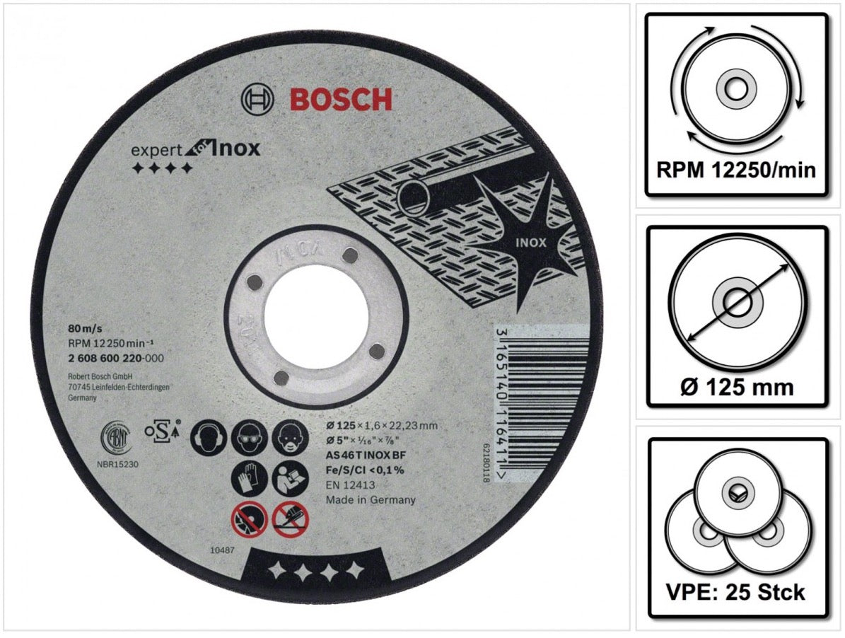 Bosch GWS 850 CE Smerigliatrice angolare 850 Watt Ø 125 mm ( 0601378790 ) + 25x Mole da taglio Bosch AS 60 T INOX BF 125 x 1,0 mm - senza batteria, senza caricatore