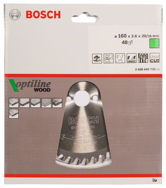 Bosch Lama per sega circolare Optiline Wood OP WO H 160 x 20 x 2,6 mm 160 mm 48 denti ( 2608640732 )
