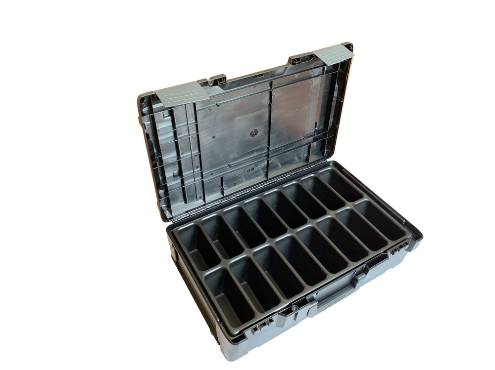 Il vassoio per minuteria XLB con 16 scomparti è un pratico vassoio in plastica termoformata con 16 scomparti. Può essere utilizzato per suddividere l'XL-BOXX in modo economico ed è ideale per conservare piccole parti, materiali di consumo e assortimenti. In combinazione con l'inserto di copertura XLB, garantisce un trasporto senza problemi. L'inserto è robusto e durevole e garantisce un utilizzo affidabile per un lungo periodo.