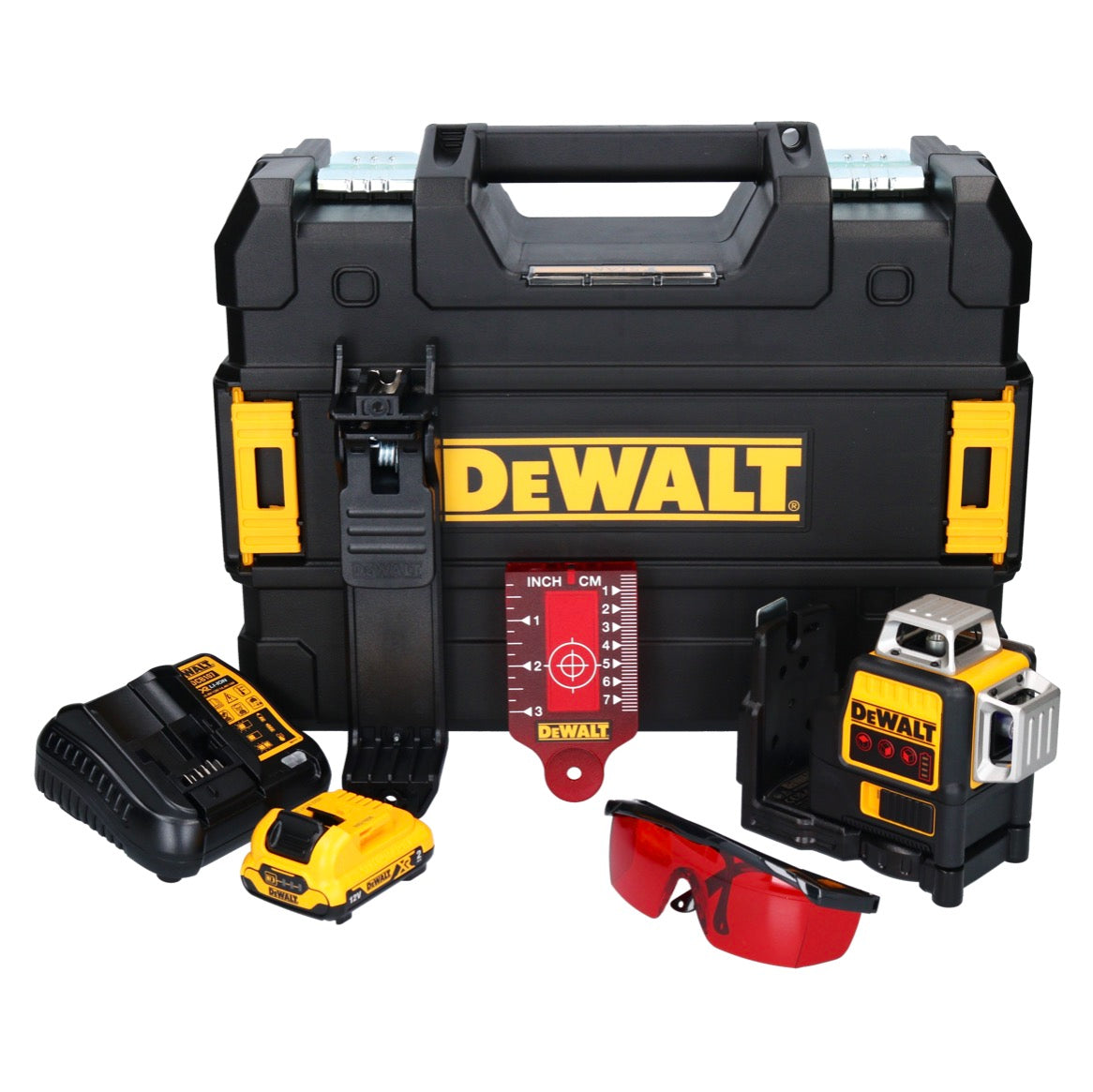 DeWalt DCE 089 D1R Akku Multilinienlaser 12 V 3x 360° rot + 1x Akku 2,0 Ah + Ladegerät + TSTAK