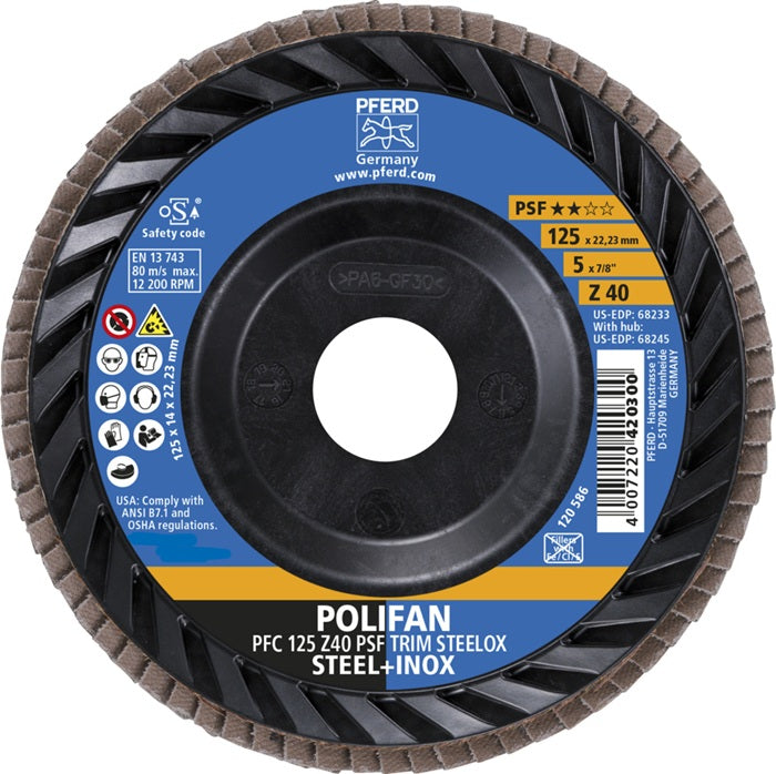 Disco lamellare PFERD TRIM STEELOX ( 8001720482 ) Ø 125 mm granulometria 40 conica