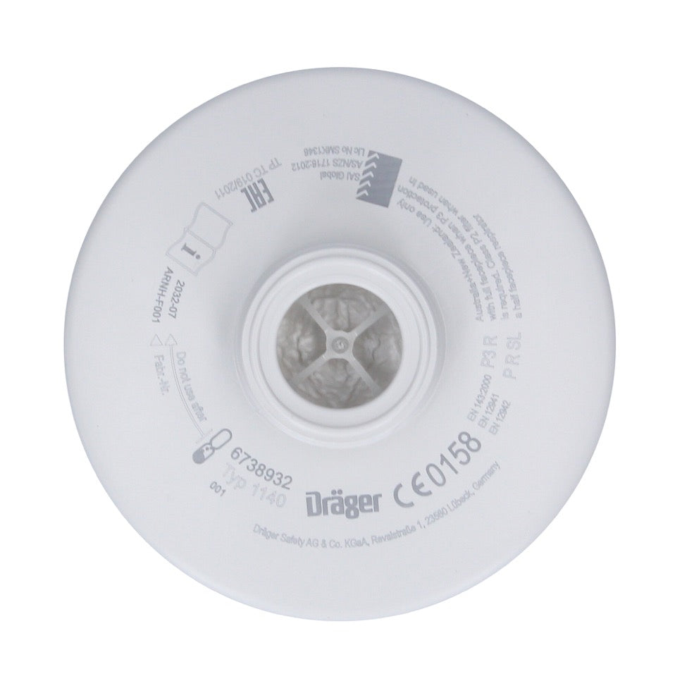 Il filtro per particelle con attacco filettato standard Rd40 secondo EN148-1 è adatto all'uso con maschere facciali integrali Dräger X-plore 6000 e semimaschere X-plore 4000 - P3 sta per particelle fino a concentrazioni della classe di filtro 3: efficienza del 99,95%. - Marcatura R: Utilizzare su più turni di lavoro.