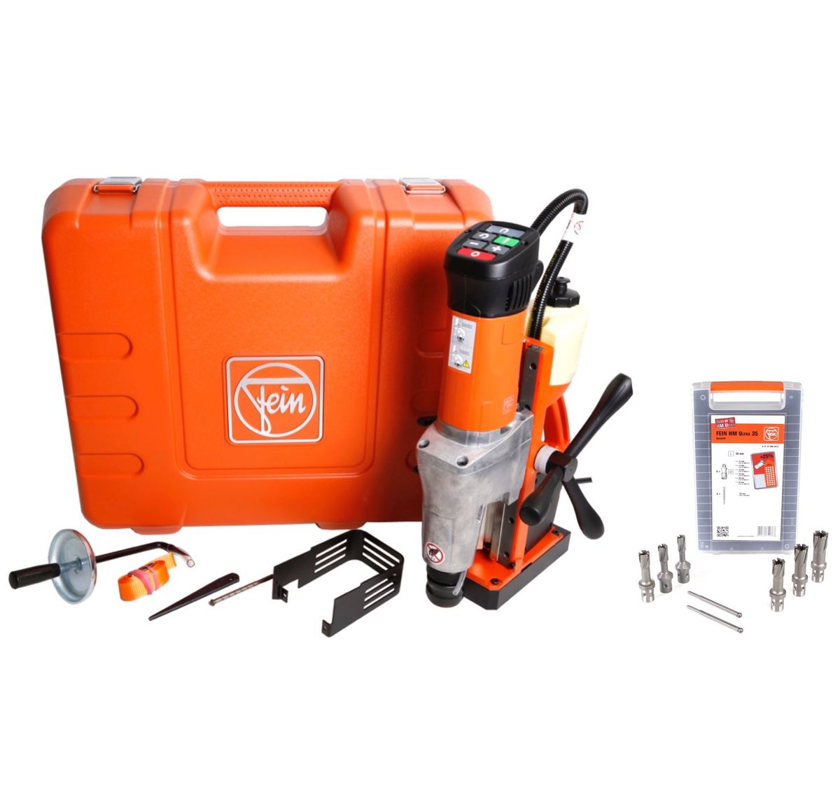 FEIN KBM 50 U 1200 W Magnet-Kernbohrmaschine bis 50 mm im Koffer + Fein Best of Kernbohrer QuickIN Zubehörset 8 tlg.